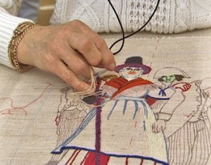 More than 70 stitchers worked to create Elizabeth Cramp's The Last Invasion, which is now an internationally recognised work of art. It runs to some 100 feet in length and stands 20" high. 198 different wool colours were used and it took some 40,000 hours to complete. In its first year it was seen by over 150,000 visitors. It has now happily found a home in the Library Gallery of the Town Hall [entrance free during normal library hours Monday/ Saturday].