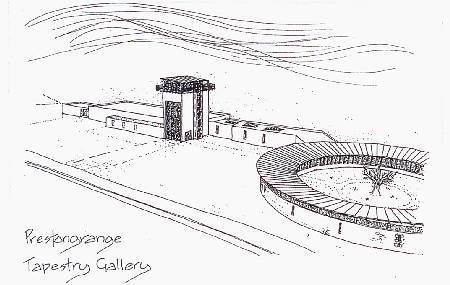 Followers of the Battle Trust's campaign to get a national Living Hstory Centre for the Battle of Prestonpans 1745 located in the town will know that one of the possible locations is at Prestongrange Heritage Museum. First thoughts are starting to take shape in sketches - below the Trust's architect has sketched how the iconic Miners' BathHouse might be rejuvenated and an associated 'donut' created to the east to house the 103 metre Prestonpans Tapestry. You'll see he's suggested a Thorntree in the central open space to commemorate local redcoat hero Colonel Gardiner of Bankton House.