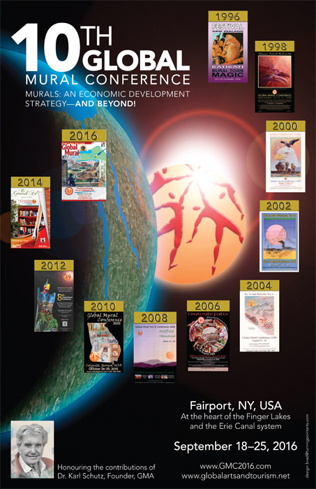 attend. Regional Symposia are also convened most particularly by CalPAMS in California and MuralRoutes in Toronto. Thus far, after an initial International Festival hosted in Katikati New Zealand in 1996, Global Conferences