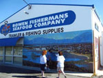 From Monday/ Friday September 12th/ 16th 2005 international muralists gathered in Bowen for the first major 'Pacific Gathering for almost a decade. Sadly Convenor Ron Wearne, who had planned every last detail, was unable to be present because of family health concerns, but the delegates from Chemainus and Edmonton Canada, from Sheffield Tasmania, from Prestoungrange Scotland, from Foxton New Zealand and from Kurri Kurri New South Wales ... togther with myriad local artists, muralists, sculptors and musicians took the programme forward under the leadership of Bowen Murals Society President Henry Young.