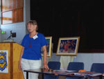 One significant feature of Bowen’s Murals is the display of all the original proposals or marquettes in the town library. It is from this staring point that the weekly walking tours that are a key feature in Bowen always commence. It was excellent therefore to have David Cornwall, the town’s librarian speaking to The Gathering. He is truly a great role model for other towns to emulate and his comments showed just how vital a role he has been able le to discuss with to play.