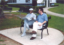 First stop was the Ken and Nancy's Heritage Museum for yet more coffee then down to the town centre for coffee with the Murals Chairman, Bruce Warden. He gave fullest details of the restoration of Barry's head and Hans took place of honour next to him and read his daily newspaper over his shoulder.