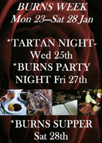 Never modest with our plans in the Pans, the whole week was devoted in the James Park Bistro to the enthusiastic consumption of the haggis and neaps and tatties, presented imaginatively in clap towers, interleaved with lasagne, as beef olives and in myriad other incarnations. Andrew Laurie our Chef was to be greatly congratulated as customers ate their way through some 300 lbs of the finest haggis to be had. And cranachan and bread and butter pudding were there to follow it down.