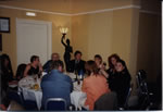They walked, they talked, they said just how delighted they were, they recalled olden days, gazed at the framed old blown-up postcards from the Pans 80 years or more ago, stood in the bar where exactly their dad had stood, posed again where they had their wedding photographs taken, lingered in the Jug Bar where empties had been returned, made reservations for anniversaries yet to come, made silent auction bids for the 2003/ 2004 Art Workshops' paintings, bought souvenirs. Beheld it all and said: “It looks really very good. Better even than I remember. It’s somewhere really rather fine to come to in the Pans.” Some even said: “It’s a miracle”; and those who put in all the hard work to get things looking the way they did could readily agree with that! [They had had their own Thank You RoundUp and Briefing on June 17th in the Thomas Nelson Suite hosted by the Baron and Lady of Prestoungrange as snapped below.]