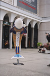 The worldwide fun and games provided by sponsorship of painted life-size animals and fish for charity began in Switzerland many years ago. But its adoption by Chicago which raised $2 million for charity led to a rash of very succesful copycat adventures all around the world. Not least the Killer Whales [orcas] in Victoria, British Columbia this year as pictured below .. even a piper and a totem pole to complement our visitors..