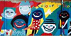 The Potters mural was completed by the students and teachers below in the last week of term in June 2002. Under the guidance of muralist Andrew Crummy and several teachers, the students produced a 70 foot mural in just under four days. At first all the students and teachers from Prestonlodge High School did not believe they could produce such a quality mural that would have such an impact.