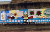 Here's the challenge. Half the class off on a trip away and the other half thinking what to do. Where better to go than the baronial foreshore? Well, maybe several places might be more appealing but after three days, tired and proud, they had a fine mural to show for it! And as a venture in community involvement it has everything and more to commend it. There are already plans for much more in the years ahead.