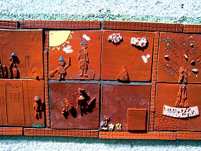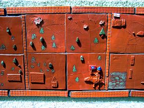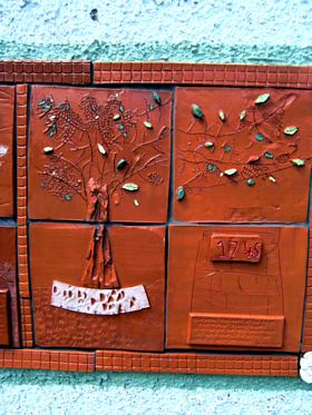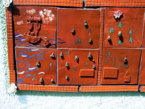 The ceramic tiles designed by P6 students of Prestonpans Primary School working with Avesha [who has her studio opposite the Prestoungrange Gothenburg in the Belfield Workshops] is a fantastic celebration of their School’s 40th Anniversary and tells some of our community's history.