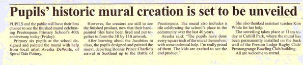 Avesha deWolfe, Arts Festival ceramicist, has worked with P6 students at Prestonpans Primary to add the latest mural to the town's ever growing collection