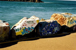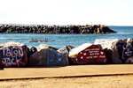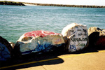 Next stop was Port Macquarie, Australia’s third oldest city, where the sea defences have been zealously created using massive chunks of inland rock. No less than 300 have become the location for inscriptional graffiti using a brilliant array of colours – and one wag offers the succinct comment: This is not vandalism!