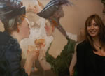 However the enduring purpose of June Lake's visit was not just a trip down Memory Lane. The Prestoungrange Arts Festival had acquired one of Wei Luan's excellent murals, The Cat Fight at the 2003 Murals Symposium in Lindsay California and shipped it across the ocean to hang on the wall in the Entrance Vestibule. June Lake had kindly agreed to unveil it, and this she did with grace and style as shown below: