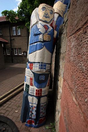 The team of youngsters from St Joseph's ELIS which has worked with Kenny Grieve and Tom Ewing to help carve and paint respectively have created two new shorter poles for the Arts Festival, and a third is in preparation. They have dubbed them the 'John Muir' Totems.