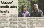 The City's wish to talk murals had been initiated by Keith and Liz Budd of Akatrack, a mountain wildlife walk for visitors and tourists alike with an overnight stop at Efil Doog, the most amazing garden and art gallery location tucked away in the Hutt valley. [For those unfamiliar with New Zealand's geography, the River Hutt flows to the sea at Wellington Harbour on the southernmost tip of that island.] They took this initiative because they see their Akatrack programme as a part of the total strategic plan for Upper Hutt City to mark itself out with a unique identity for residents and businesses, rather than an adjunct in the regional penumbra of Wellington as the capital city.