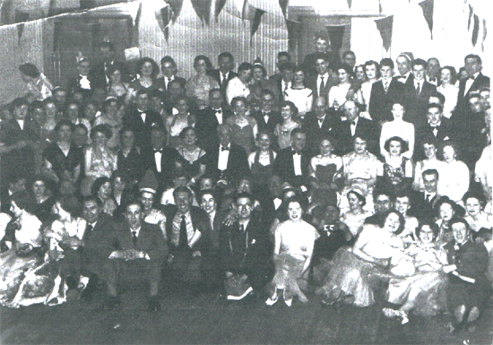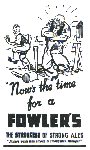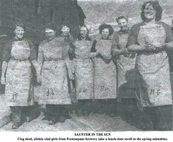 First its for Fowler's ... as we see two advertisements for Fowler's Ales taken from the Gala Magazine in 1951 and 1952, followed by her Pay Packet week ending 10 December 1955 of £4-2/6d less Deductions of 4/3d making take home pay of £3-18/3d. Then we see her at work with friends in 1954-1956 [ she's got BH on her overall ] and at the Christmas dance in December 1954. Last she has an advertisement for a Fowler's Storyline Exhibition Pints fi' the 'Pans recalled at the Museum at Morison's Haven with some names known but not all of them.