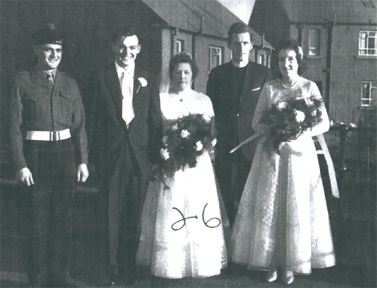 Second we see her on her Wedding Day with Archie Ferrier in February 1960 in The Gothenburg cutting the cake and on the south balcony with her bridesmaid, the bridegroom and the Minister.