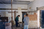 Inside The Gothenburg others are also labouring long and hard. The Microbrewery is now almost ready ( really ) to receive the equipment so long planned by Iain Turnbull and George Thompson, as shown in the picture below. The ventilation system, the drainage and even the Hollywood lighting have all been careful thought through. And as soon as possible Iain and George will begin test brews for Fowler's (Prestoungrange) Ales, the new company established at The Gothenburg to bring the memories of Fowler's in the town back to life. None will be ready by the day but imports from Sweden and the help of Belhaven's in Dunbar will more than compensate.